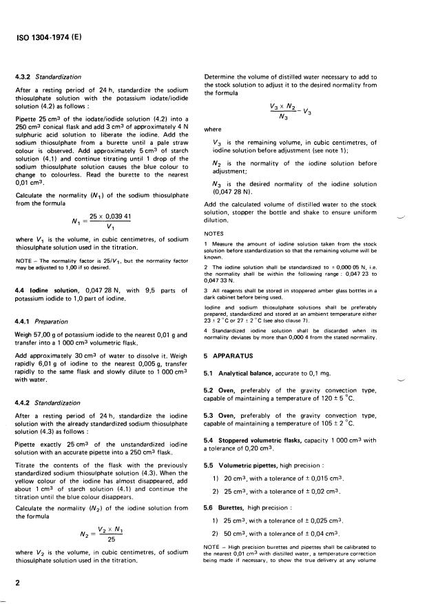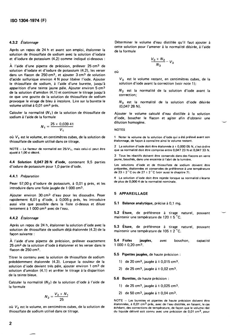 2 La solution d'iode doit être étalonnée à f 0,000 05 N, c'est-à-dire