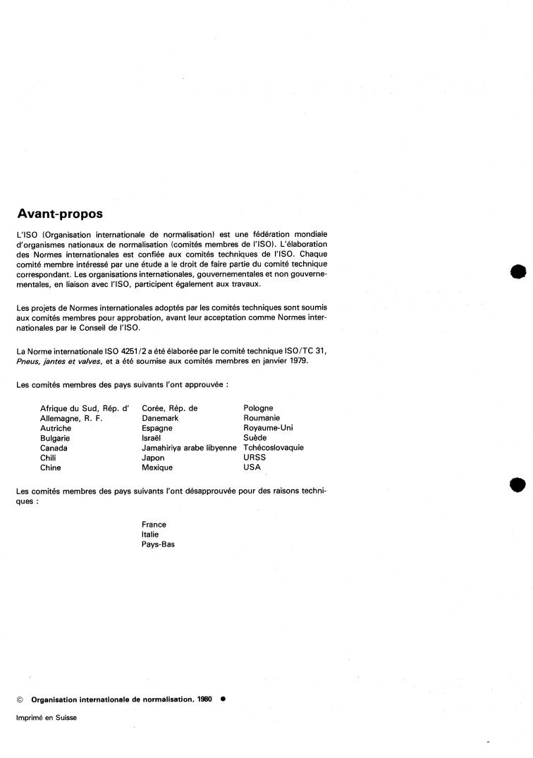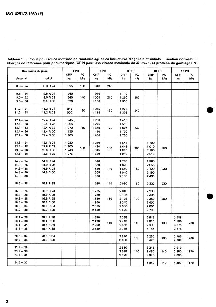 I'ISO 4251 /1, 1'1Ç0 4251 /3 et I'ISO 4251 /4. Les charges pour les pneumatiques de structures diagonale et