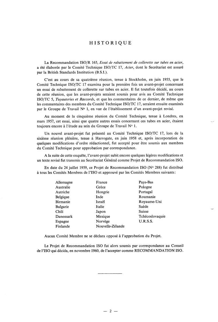 The IS0 Recommendation R 165, Flanging Test on Steel Tubes, was drawn up by