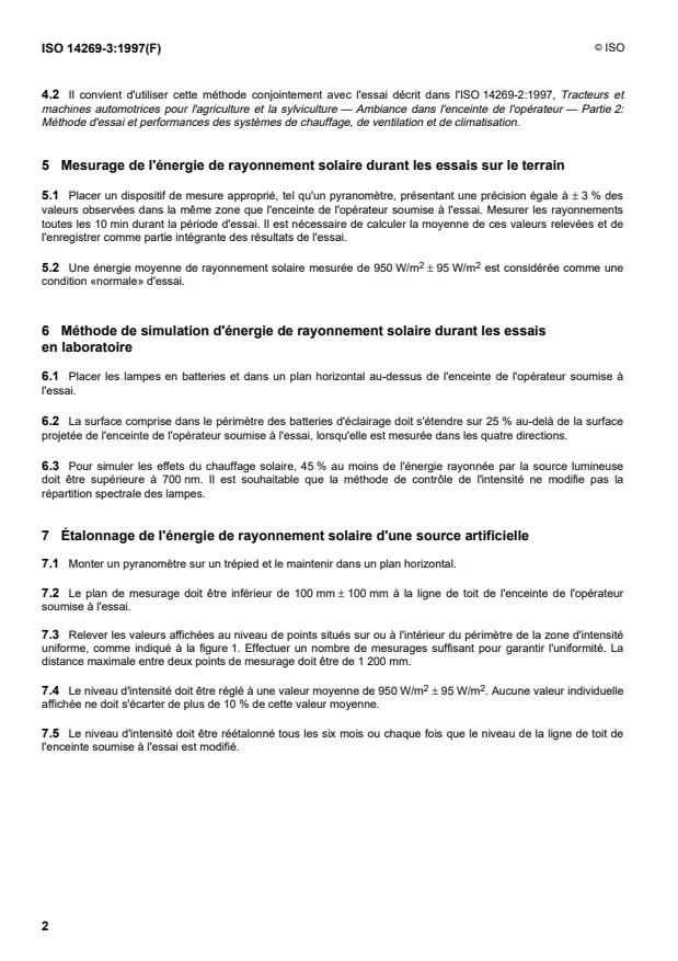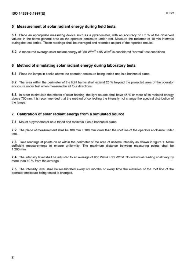 Keywords: ISO 14269-3, operator enclosure environment, solar heating, solar radiant energy, pyranometer, tractors, self-propelled machines, HVAC testing, laboratory simulation, calibration.