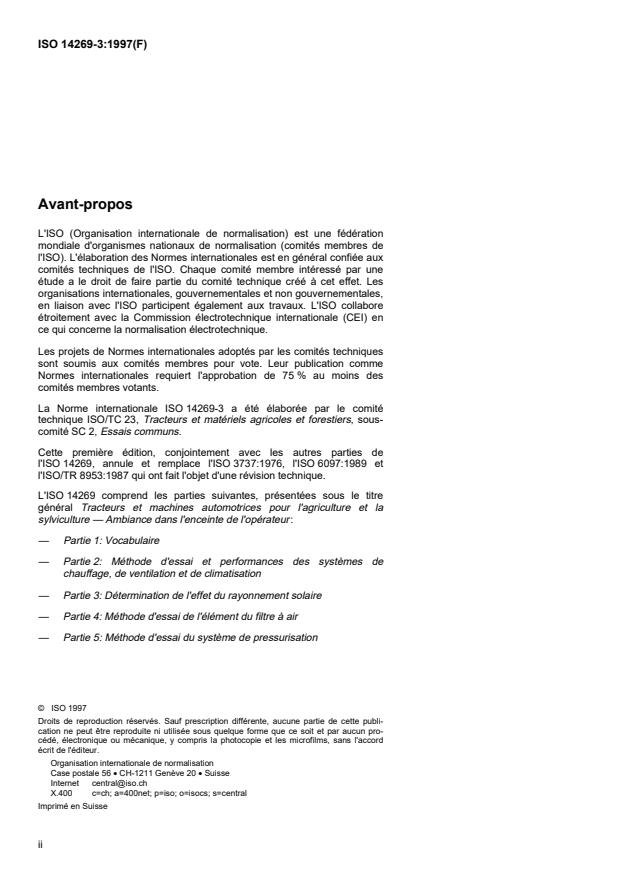 ISO 14269-1:1997, Tracteurs et machines automotrices pour l'agriculture et la sylviculture — Ambiance dans