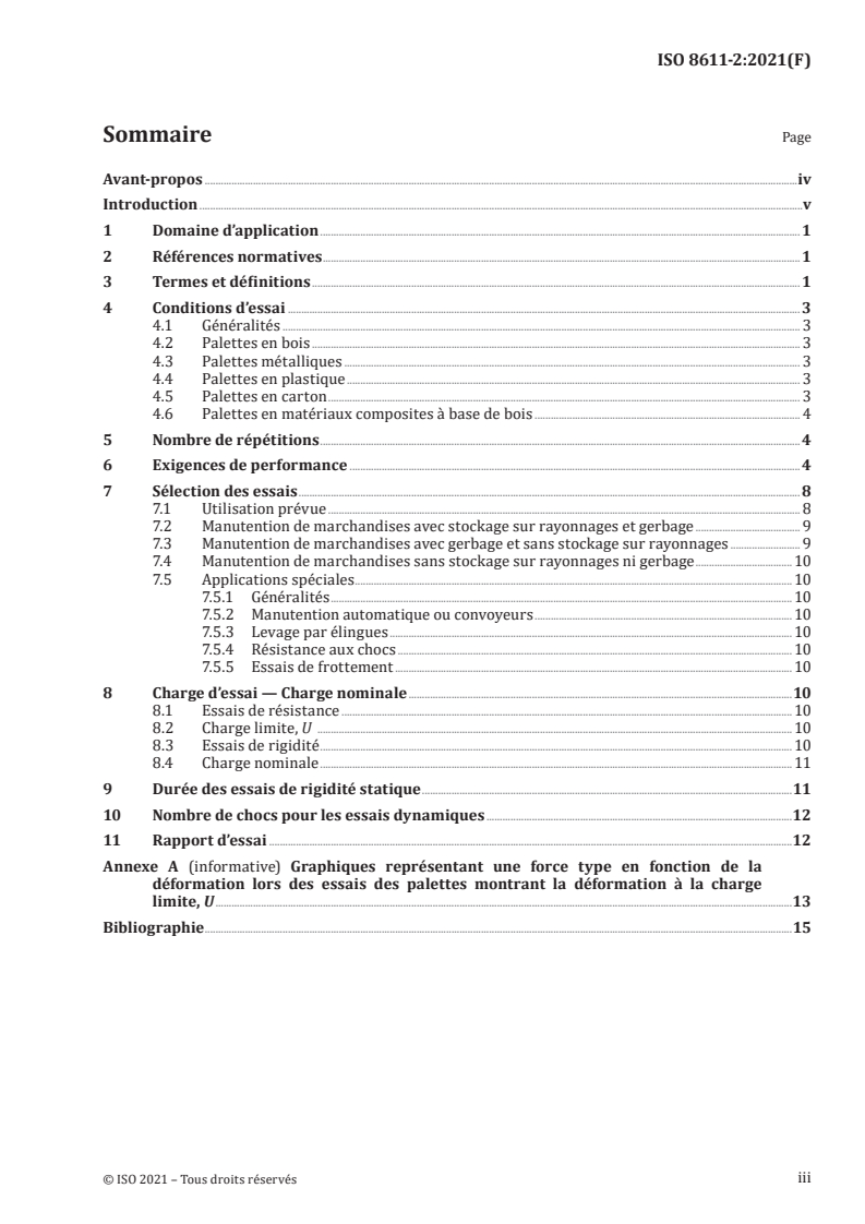 ISO 8611-3, Palettes pour la manutention — Palettes plates — Partie 3: Charges maximales en service