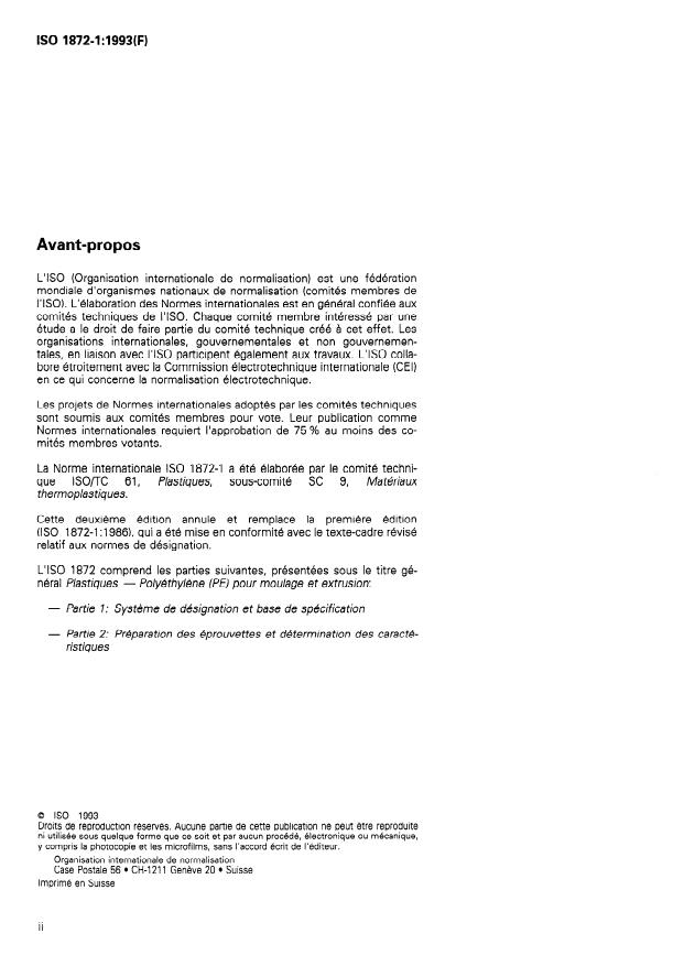 ISO 1872-2: 1989, Plastiques - Thermoplastiques a base de polyethylene (PE) et de copolymères d’éthylène -