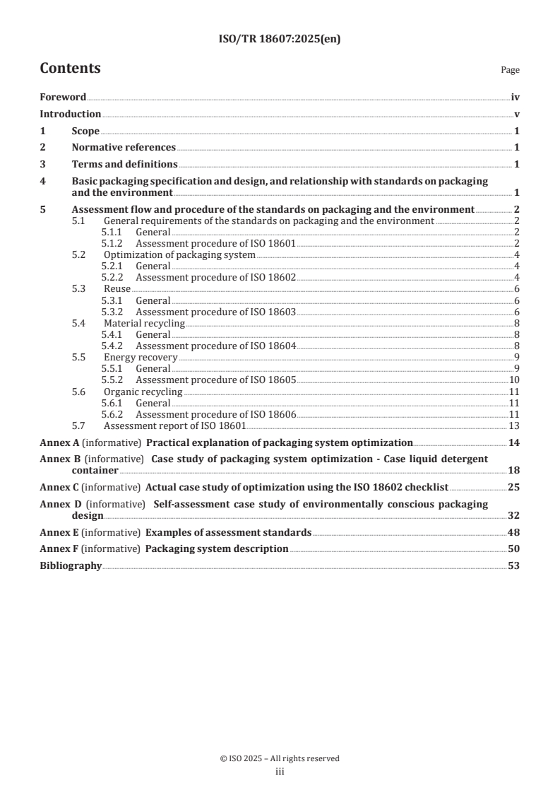 ISO/TR 18607:2025 is a technical report published by the International Organization for Standardization (ISO). Its full title is "Packaging and the environment - Information on environmentally conscious packaging design". This standard covers: This document gives information on environmentally conscious packaging design based on the standards on packaging and the environment. It provides essential tips on how to improve packaging through reduction processes and includes practical examples to illustrate these points. This document is applicable to all suppliers responsible for placing packaging or packaged goods on the market.