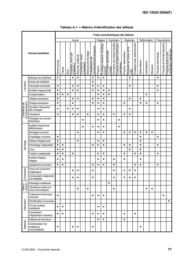 ISO 15243:2004 - Roulements -- Détérioration et défaillance -- Termes, caractéristiques et causes