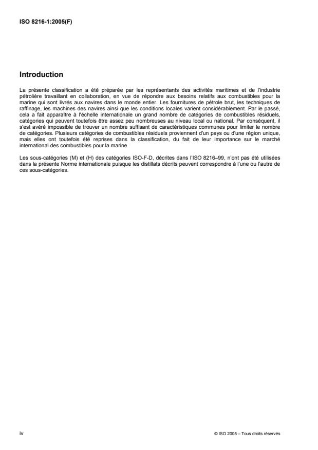 L'ISO 8216-1:2005 établit la classification détaillée des combustibles pour la marine appartenant à la classe F (combustibles pétroliers). Elle est censée être lue conjointement avec l'ISO 8216-99. Tous les combustibles pour la marine peuvent être utilisés par les navires dans de nombreuses applications analogues mais avec cependant des différences. Beaucoup de combustibles pour la marine à base de résidus de pétrole brut n'ont pas de définition spécifique. Néanmoins, ils peuvent être inclus dans le cadre de l'ISO 8216-1:2005.