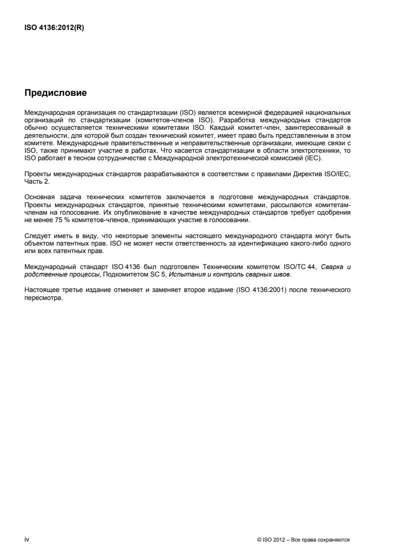 Международный стандарт ISO 4136 был подготовлен Техническим комитетом ISO/TC 44, Сварка и