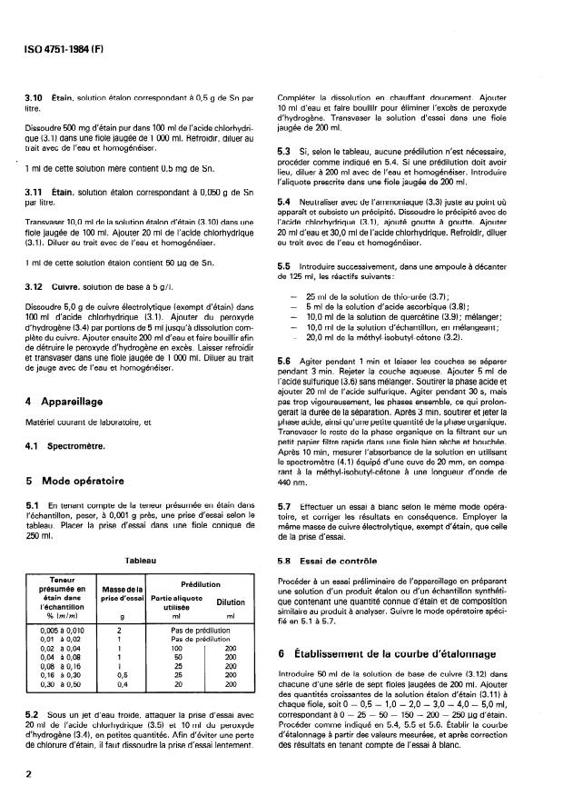 ISO 4751:1984 - Copper and copper alloys -- Determination of tin content -- Spectrometric method