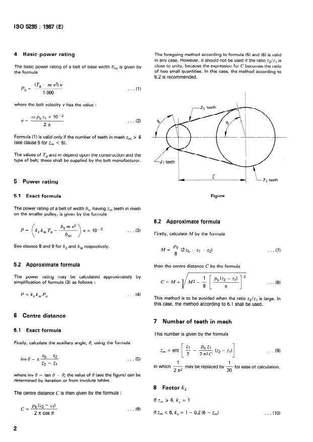 This second edition cancels and replaces the first edition (1981). Establishes formulae for the calculation of power synchronous belts on two pulley drives. The numerical values of certain parameters used in the calculation depend upon the pitch and the construction of the belt and shall be specified by the belt manufacturer.