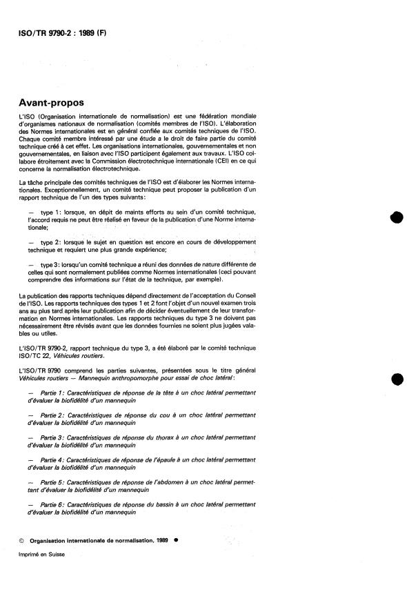 ISO/TR 9790-2:1989 - Véhicules routiers -- Mannequin anthropomorphe pour essai de choc latéral