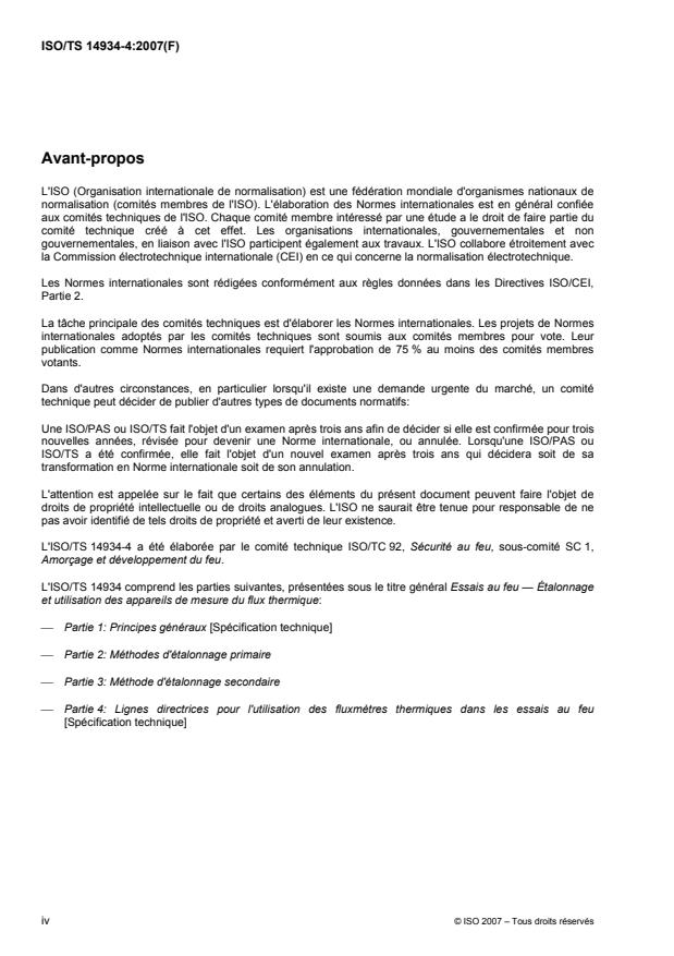 ISO/TS 14934-4:2007 - Essais au feu -- Étalonnage et utilisation des appareils de mesure du flux thermique
