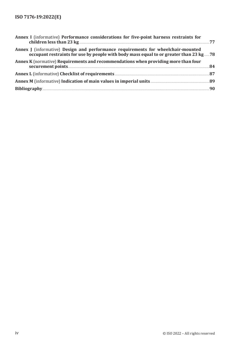 - Specifications for securement points (Annex B), tiedown accessibility tests (Annex C), rating methods for accommodation of vehicle belts (Annex D)