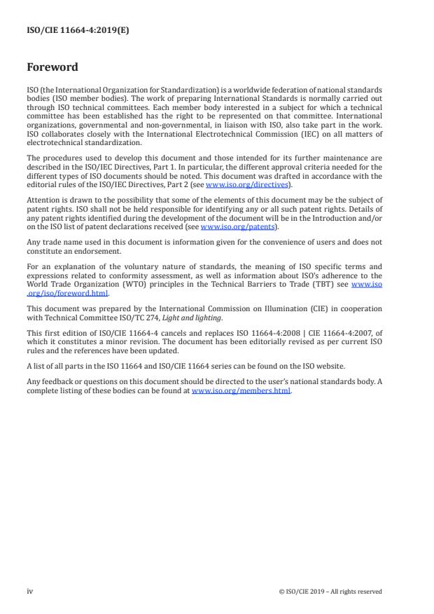 Cette première édition de l’ISO/CIE 11664-4 annule et remplace l’ISO 11664-4:2008 | CIE 11664-4:2007,