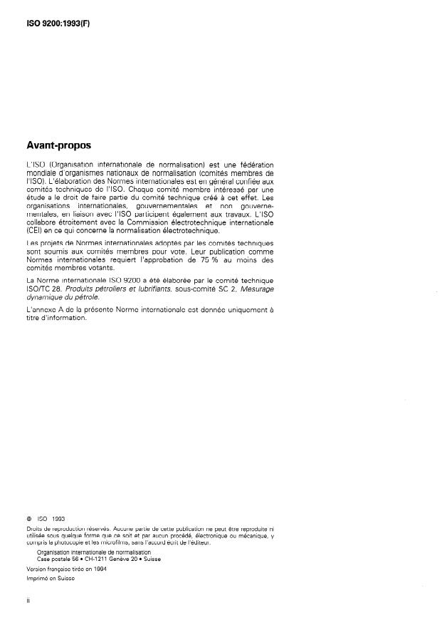 ISO 9200:1993 is a standard published by the International Organization for Standardization (ISO). Its full title is "Crude petroleum and liquid petroleum products — Volumetric metering of viscous hydrocarbons". This standard covers: Defines viscous hydrocarbons and describes the difficulties that arise when they are raised to high temperatures. The effects of such temperatures upon meters, auxiliary equipment and fittings are discussed, and advice and warnings to overcome or mitigate difficulties are included.