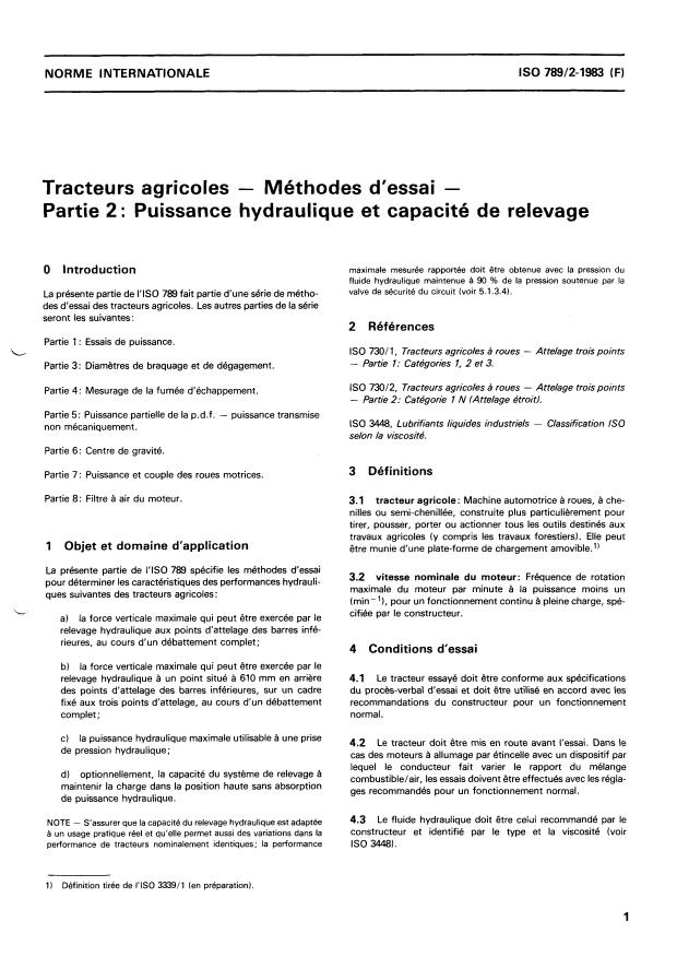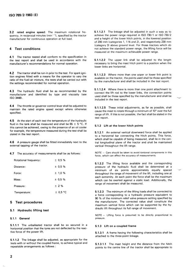 ISO 789-2:1983 is a standard published by the International Organization for Standardization (ISO). Its full title is "Agricultural tractors — Test procedures — Part 2: Hydraulic power and lifting capacity". This standard covers: Agricultural tractors — Test procedures — Part 2: Hydraulic power and lifting capacity
