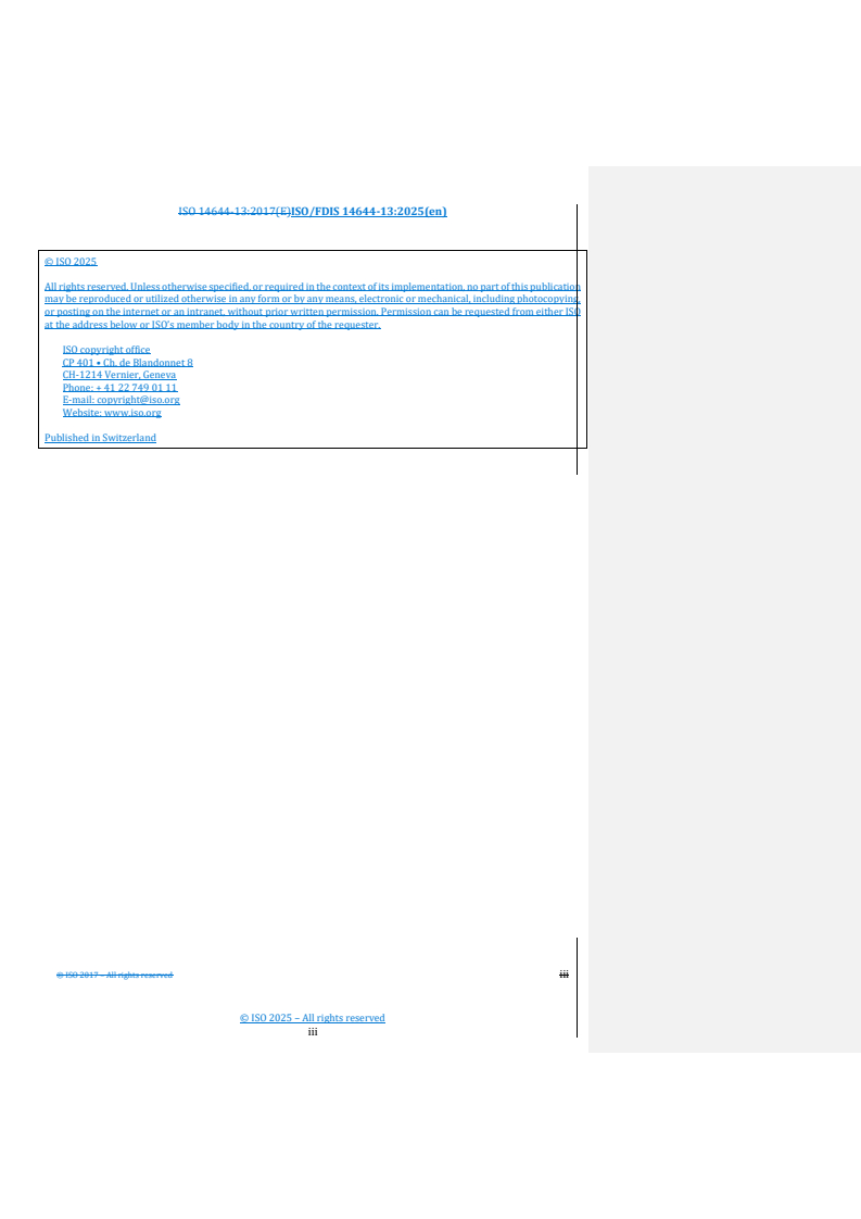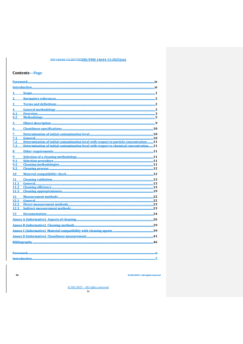 REDLINE ISO/FDIS 14644-13 - Cleanrooms and associated controlled environments — Part 13: Cleaning of surfaces to achieve defined levels of cleanliness in terms of particle and chemical concentration Released:10/9/2025
