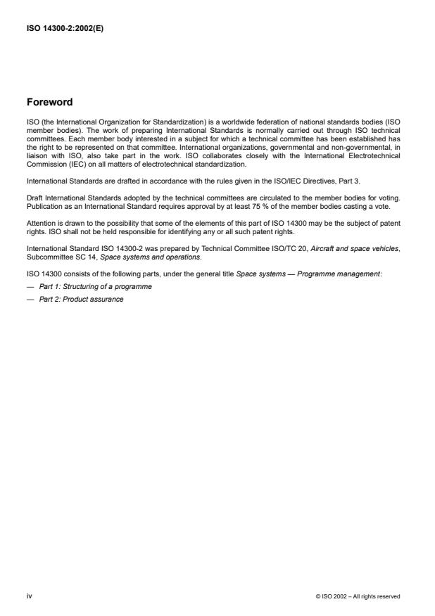 ISO 14300 consists of the following parts, under the general title Space systems — Programme management:
