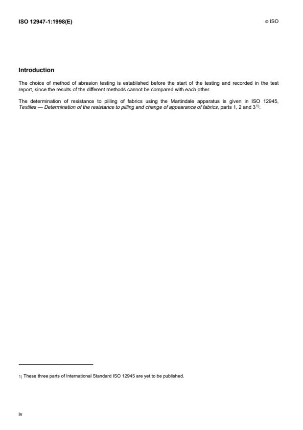ISO 12947 consists of the following parts under the general title Textiles – Determination of the abrasion resistance