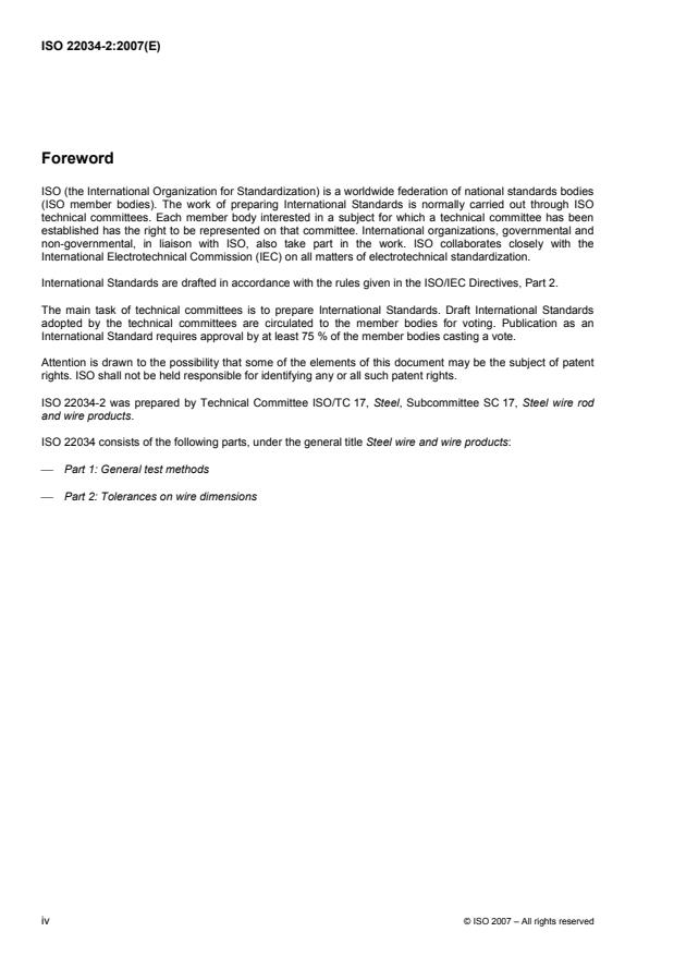 ISO 22034-2 was prepared by Technical Committee ISO/TC 17, Steel, Subcommittee SC 17, Steel wire rod