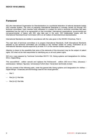Key keywords: ISO 18163, digital fittings, virtual garment, virtual fabric, garment simulation, virtual sewing, pattern strain, mesh structure, texture maps, DXF.