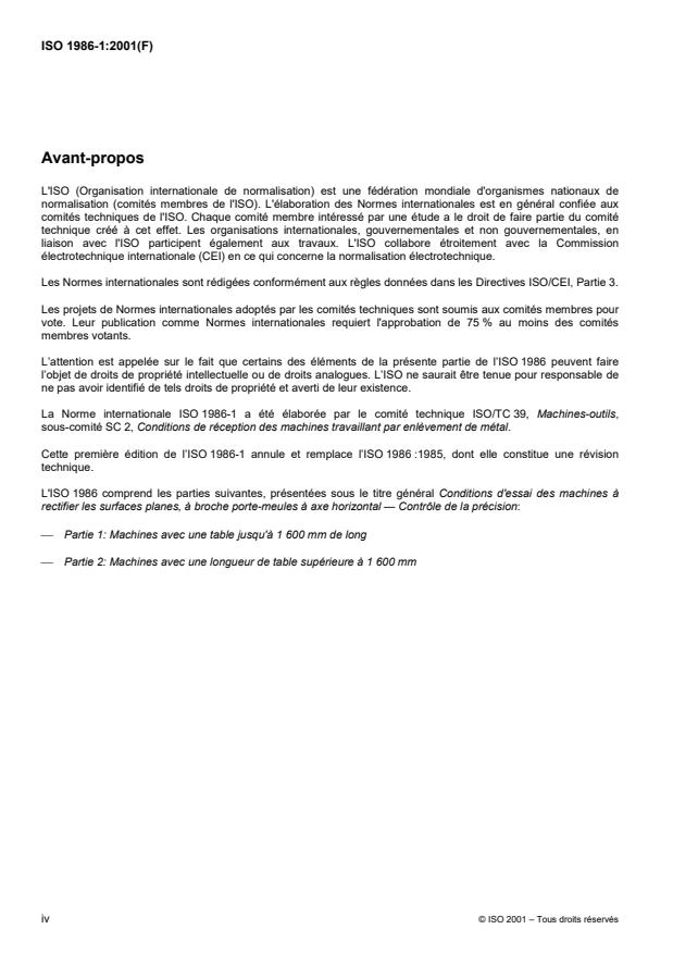 La Norme internationale ISO 1986-1 a étéélaboréepar le comité technique ISO/TC 39, Machines-outils,