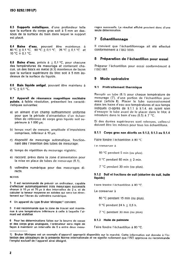 ISO 8292:1991 - Corps gras d'origines animale et végétale -- Détermination de la teneur en corps gras solides -- Méthode par résonance magnétique nucléaire pulsée