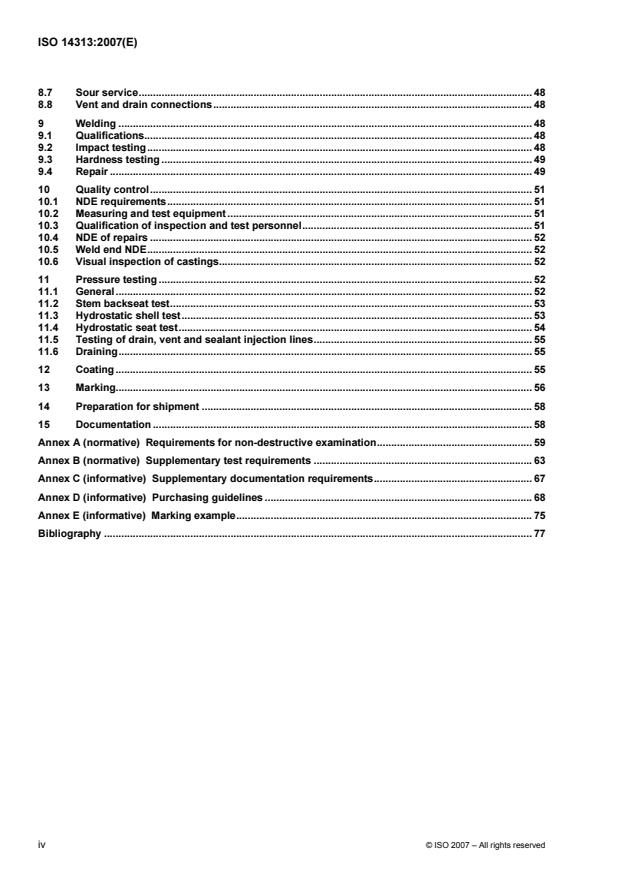 - Annexes: normative NDE and supplementary test requirements (Annex A, B) and informative guidance for documentation, purchasing and marking (Annex C–E).