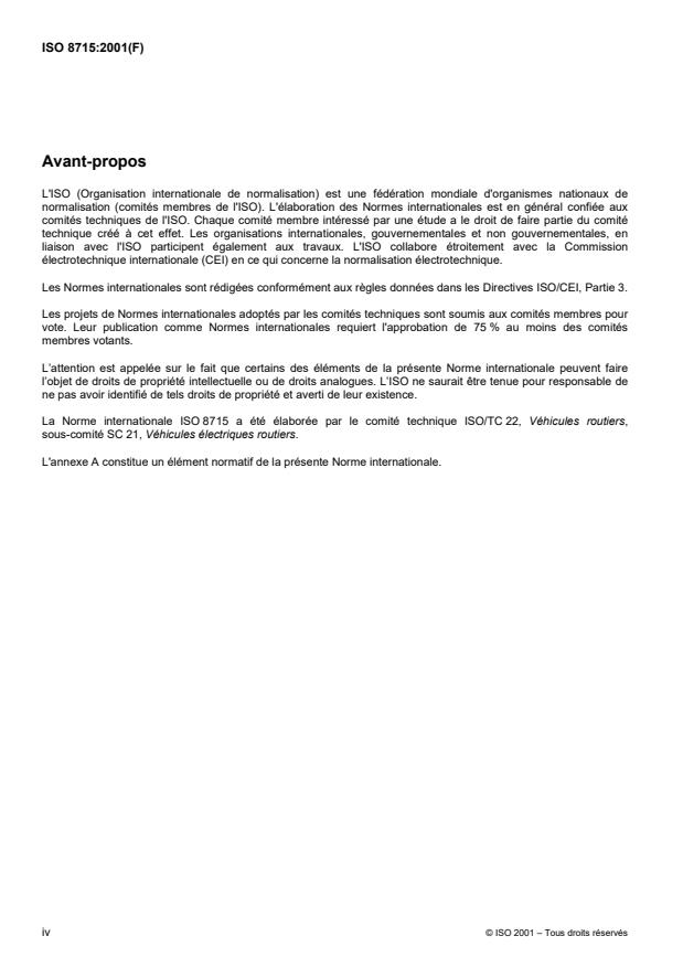 International Standard ISO 8715 was prepared by Technical Committee ISO/TC 22, Road vehicles, Subcommittee