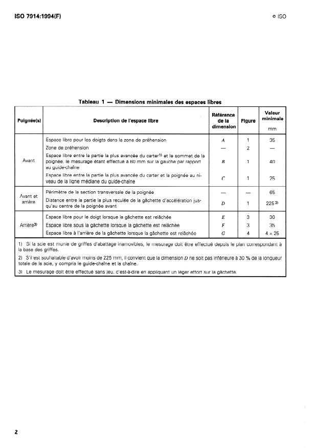 ISO 7914:1994 - Machines forestieres -- Scies a chaîne portatives -- Espaces libres minimaux et dimensions des poignées