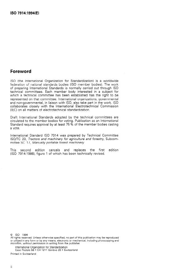 ISO 7914:1986 - Forestry machinery — Portable chain saws — Minimum handle clearance and sizes - Effective Date