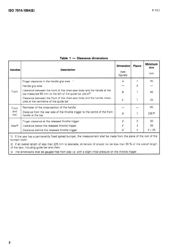 ISO 7914:1994 - Forestry machinery -- Portable chain-saws -- Minimum handle clearance and sizes
