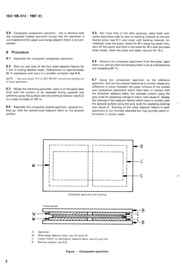 ISO 105-X13:1987 is a standard published by the International Organization for Standardization (ISO). Its full title is "Textiles — Tests for colour fastness — Part X13: Colour fastness of wool dyes to processes using chemical means for creasing, pleating and setting". This standard covers: Textiles — Tests for colour fastness — Part X13: Colour fastness of wool dyes to processes using chemical means for creasing, pleating and setting