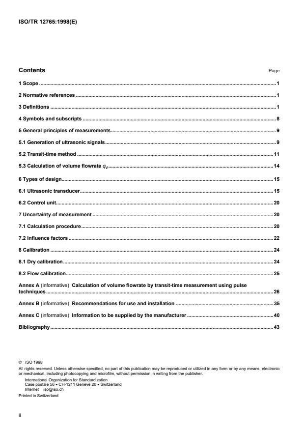ISO/TR 12765:1998 is a technical report that focuses on the measurement of fluid flow in closed conduits using transit-time ultrasonic flowmeters. The report provides guidance on the principles, types, and applications of transit-time ultrasonic flow meters for fluid flow measurement. It also covers the selection of appropriate measurement methods, as well as installation, calibration, and maintenance procedures. The purpose of this report is to ensure accurate and reliable fluid flow measurement in various industrial applications.