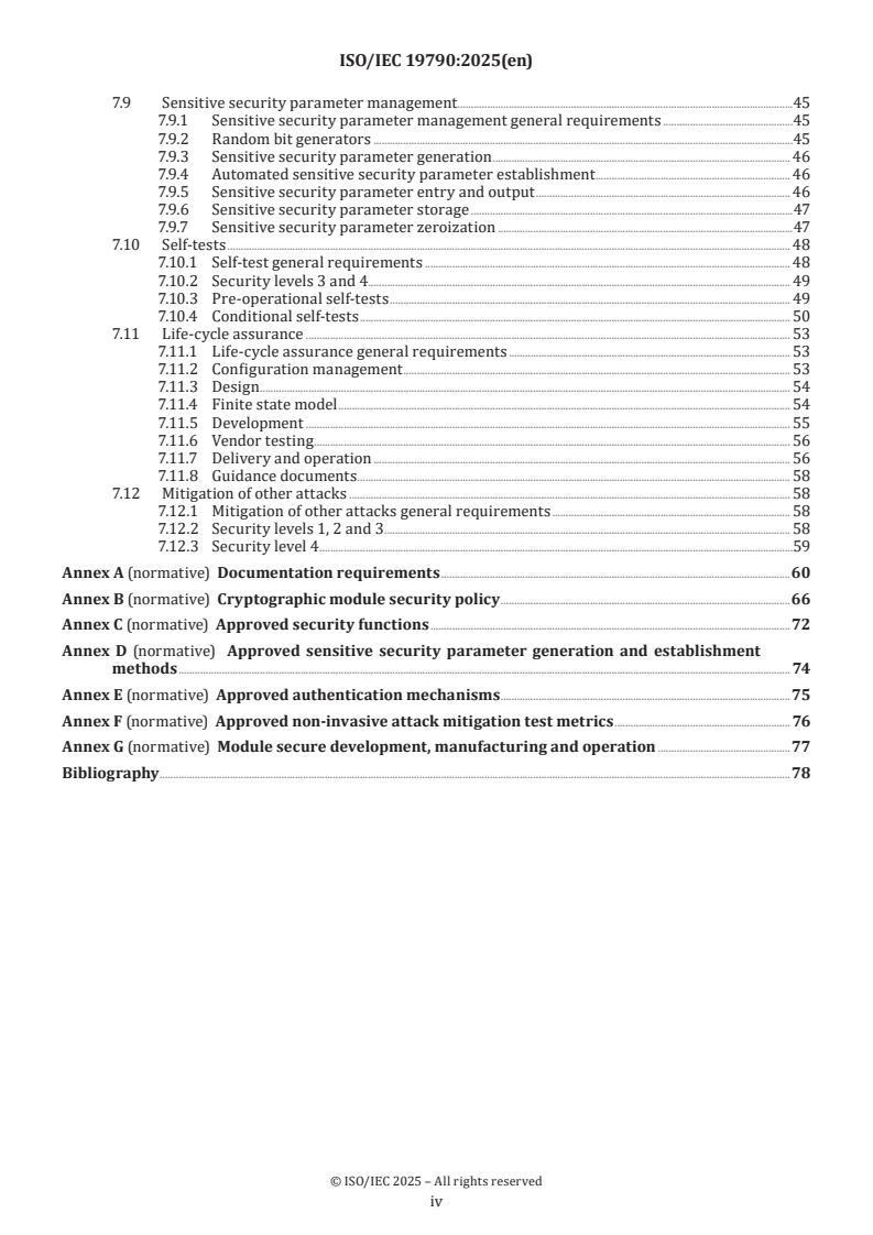 Keywords: ISO/IEC 19790:2025, cryptographic modules, security requirements, cryptographic boundary, sensitive security parameter, physical security, non-invasive attacks, self-tests, life-cycle assurance.
