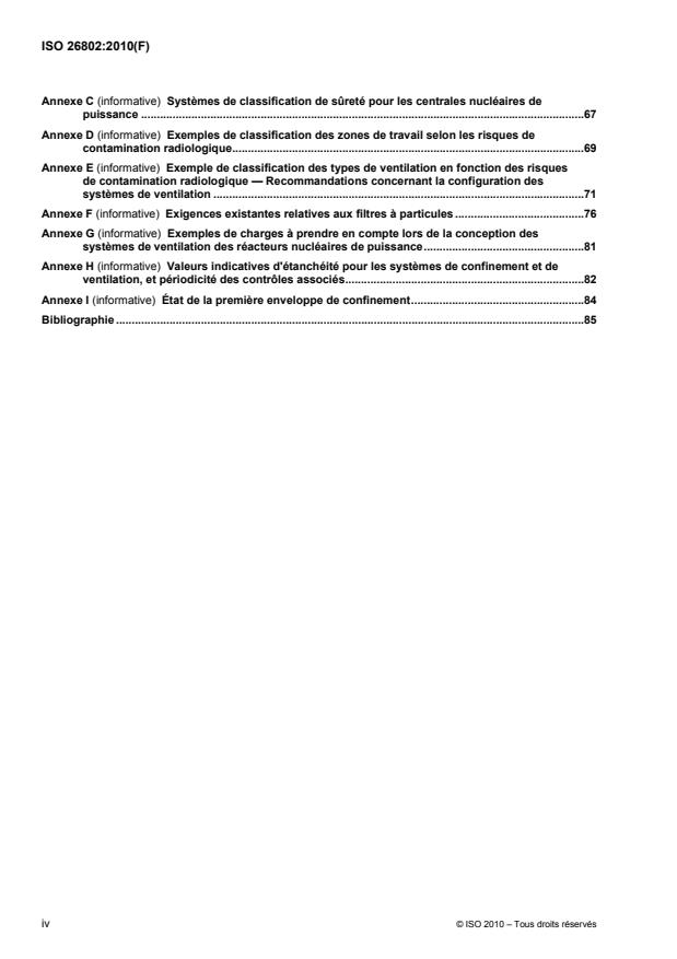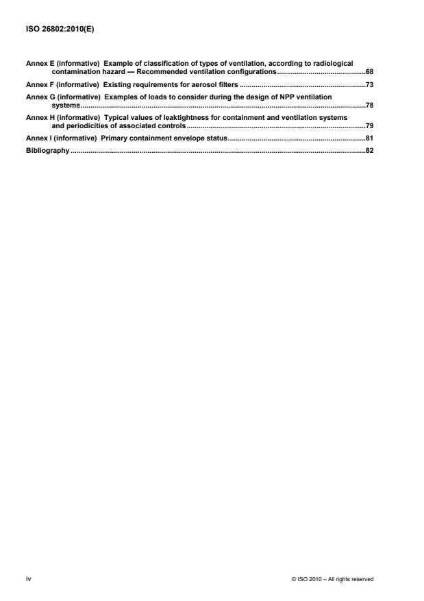 ISO 26802:2010 specifies the applicable requirements related to the design and the operation of containment and ventilation systems of nuclear power plants and research reactors taking into account the following. For nuclear power plants, ISO 26802:2010 addresses only reactors that have a secondary confinement system based on IAEA recommendations. For research reactors, ISO 26802:2010 applies specifically to reactors for which accidental situations can challenge the integrity or leak-tightness of the containment barrier, i.e. in which a high-pressure or -temperature transient can occur and for which the isolation of the containment building and the shut-off of the associated ventilation systems of the containment building is required. The requirements of ISO 26802:2010 apply to research reactors in which the increase of pressure or temperature during accidental situations do not risk damaging the ventilation systems, although the requirements applicable for the design and the use of ventilation systems are given in ISO 17873.