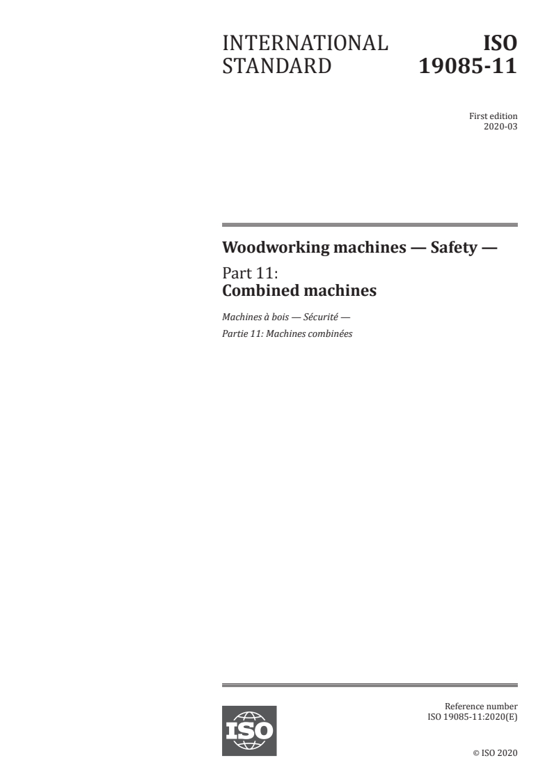 ISO 19085-11:2020 - Woodworking machines — Safety — Part 11: Combined machines Released:3/20/2020