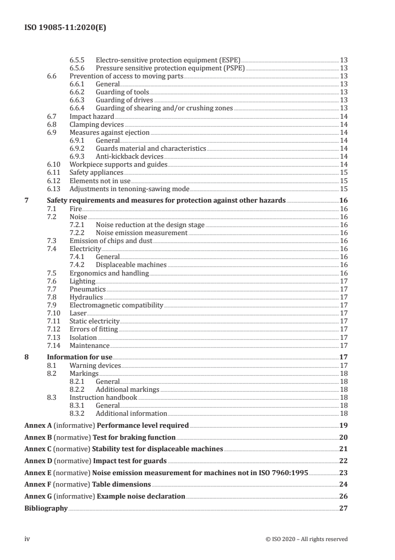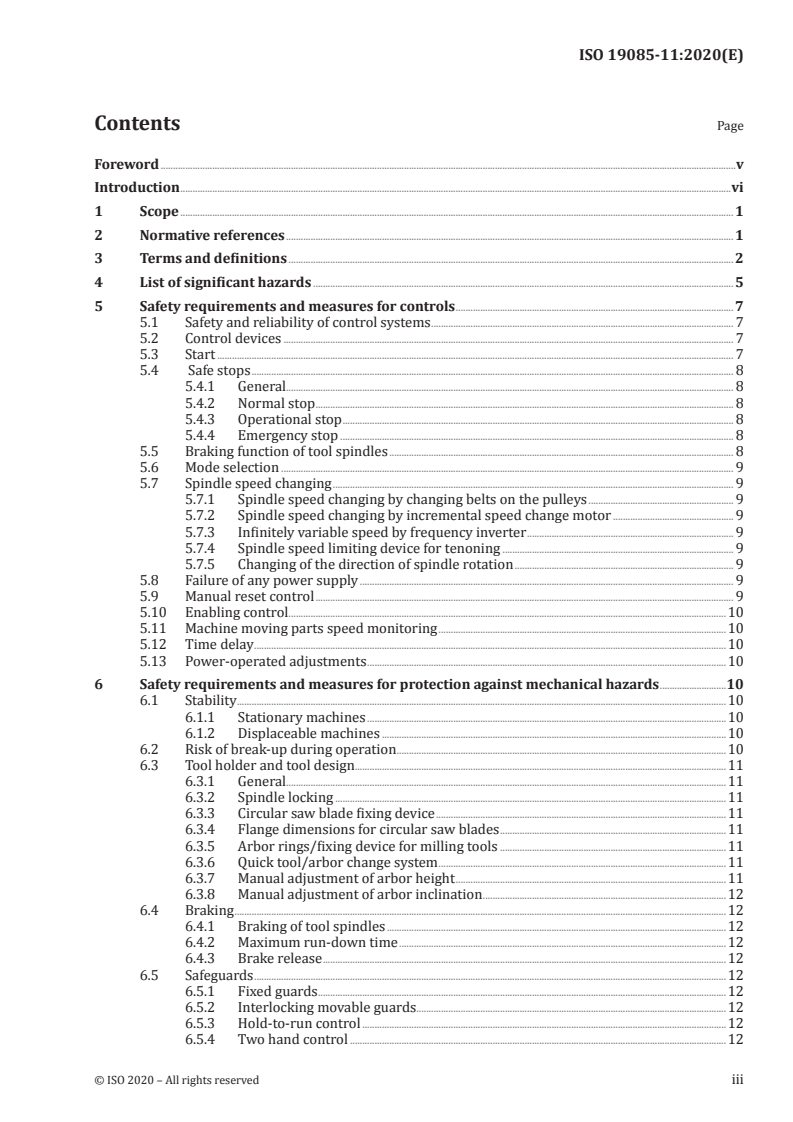 Keywords: ISO 19085-11, woodworking machines safety, combined machines, safety requirements, guarding, braking, noise, dust, machine controls, standards.