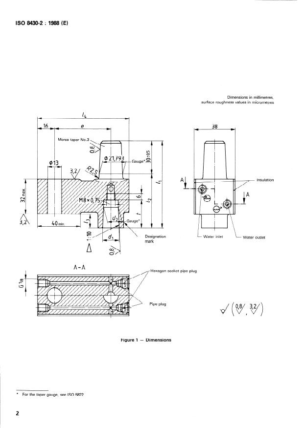 La présente partie de I’ISO 8430 prescrit les dimensions et tolé- Les dimensions doivent être celles données à la figure 1 et dans