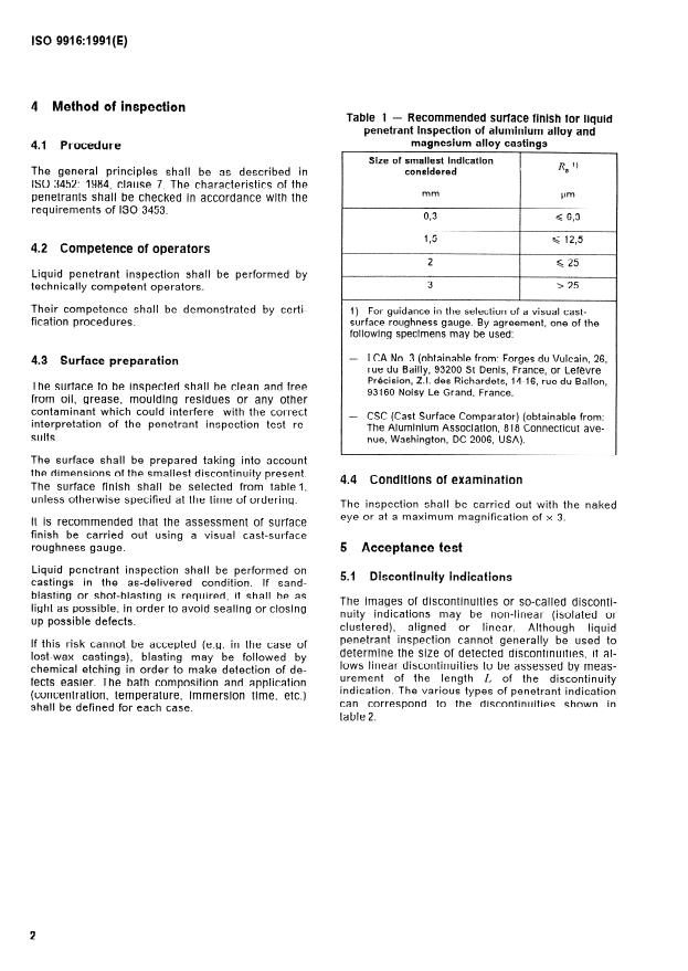 ISO 9916:1991 - Aluminium alloy and magnesium alloy castings -- Liquid penetrant inspection