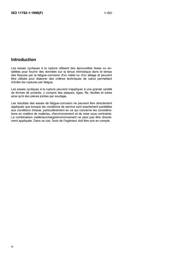 This International Standard provides guidance and instruction on corrosion fatigue testing of metals and alloysin aqueous or gaseous environments and is concerned with cycles to failure testing. Crack propagation testing isconsidered in ISO 11782-2.1.2