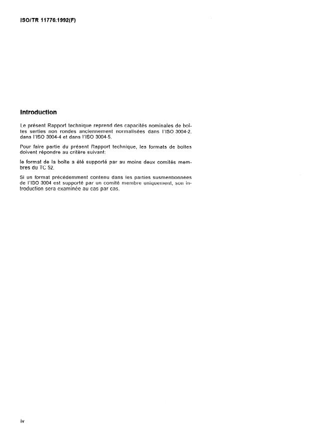ISO/TR 11776:1992 - Emballages métalliques légers -- Boîtes serties non rondes -- Boîtes définies par leur capacité nominale