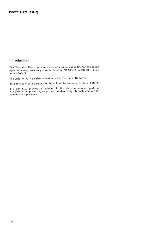 ISO/TR 11776:1992 - Light gauge metal containers -- Non-round open-top cans -- Cans defined by their nominal capacities
