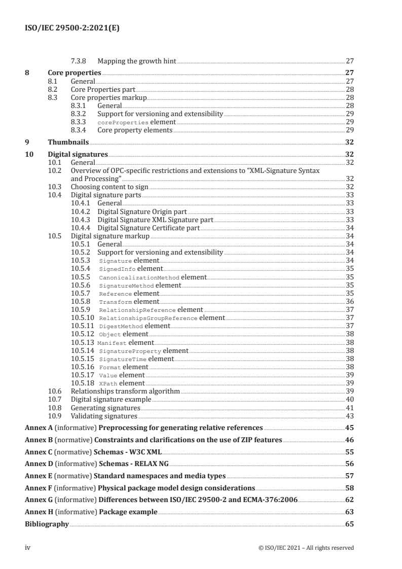 Keywords: ISO/IEC 29500-2, Open Packaging Conventions, Office Open XML, OPC, packaging, ZIP mapping, digital signatures, core properties, part relationships.