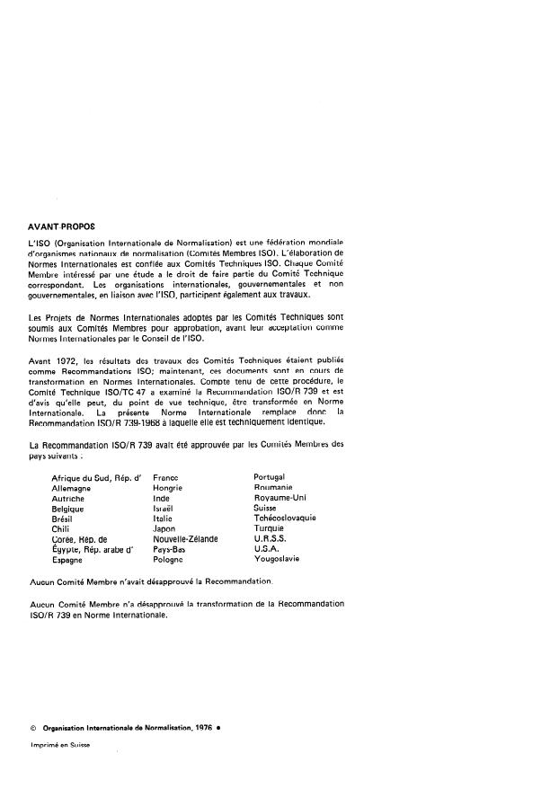 replaces IS0 Recommendation R 739-1968 to which it is technically identical.
