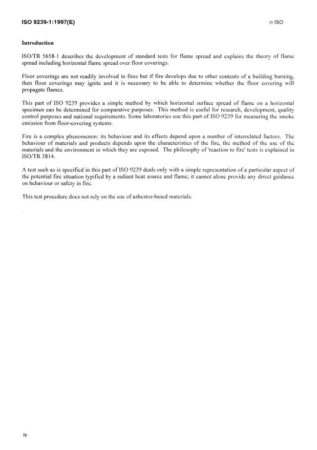 ISO 9239-1:1997 - Reaction to fire tests -- Horizontal surface spread of flame on floor-covering systems