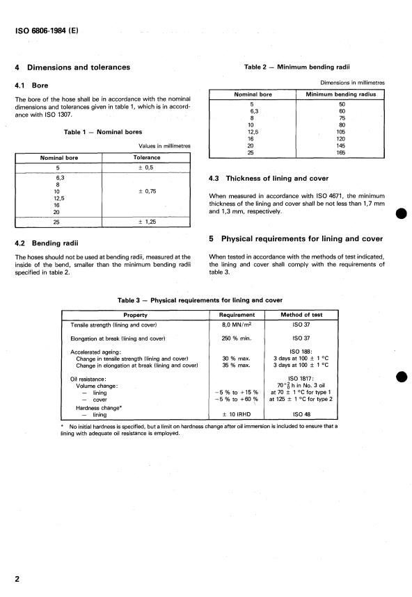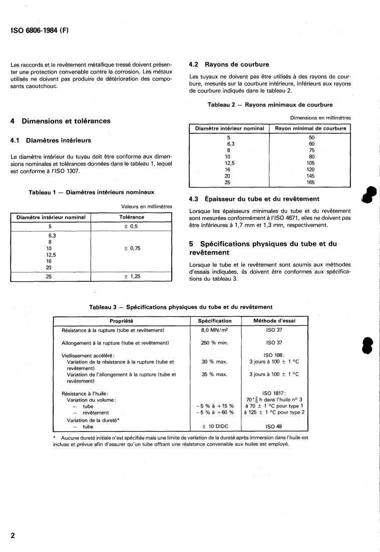 Descriptors : hoses, rubber products, rubber hoses, oil burners, specifications, dimensions, dimensional tolerances, dimensional stability,