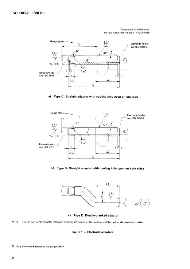 This part of ISO 5183 specifies the dimensions and tolerantes The designations of electrode adaptors which comply with this