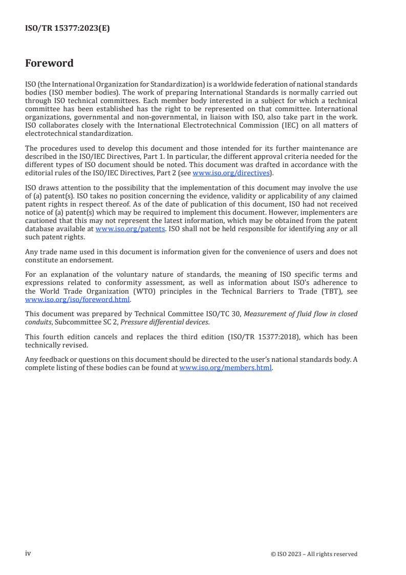 Keywords: ISO/TR 15377:2023, pressure‑differential devices, orifice plates, nozzles, Venturi tubes, flow measurement, discharge coefficient, ISO 5167.