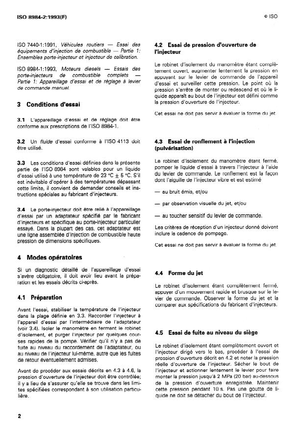 sur un injecteur donne, ainsi que les limites accep- ISO 4113:1988, V6hicules routiers - Fluide d’essai