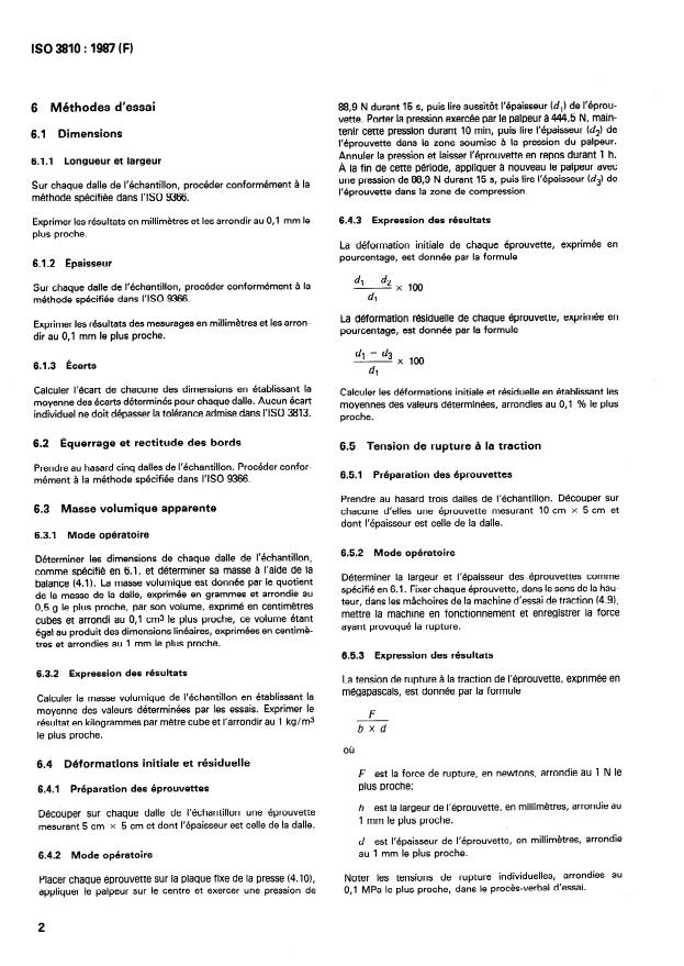 ISO 3810:1987 - Dalles d'aggloméré de liege pour revetements des sols -- Méthodes d'essai